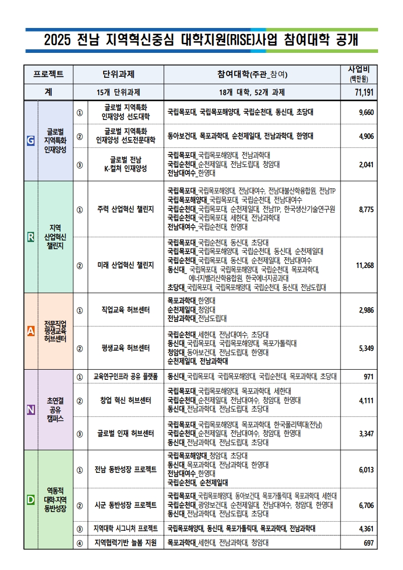 [안내] 2025 전남 지역혁신중심 대학지원(RISE)사업 최종 참여대학 공개