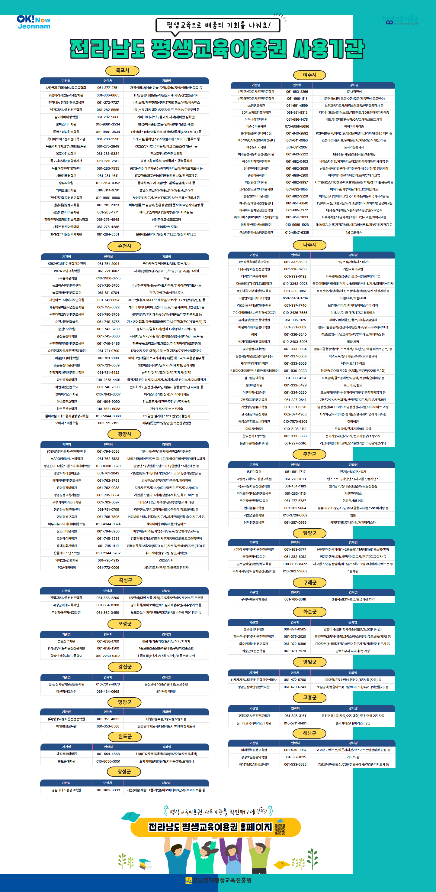전라남도 평생교육이용권 담당자입니다.