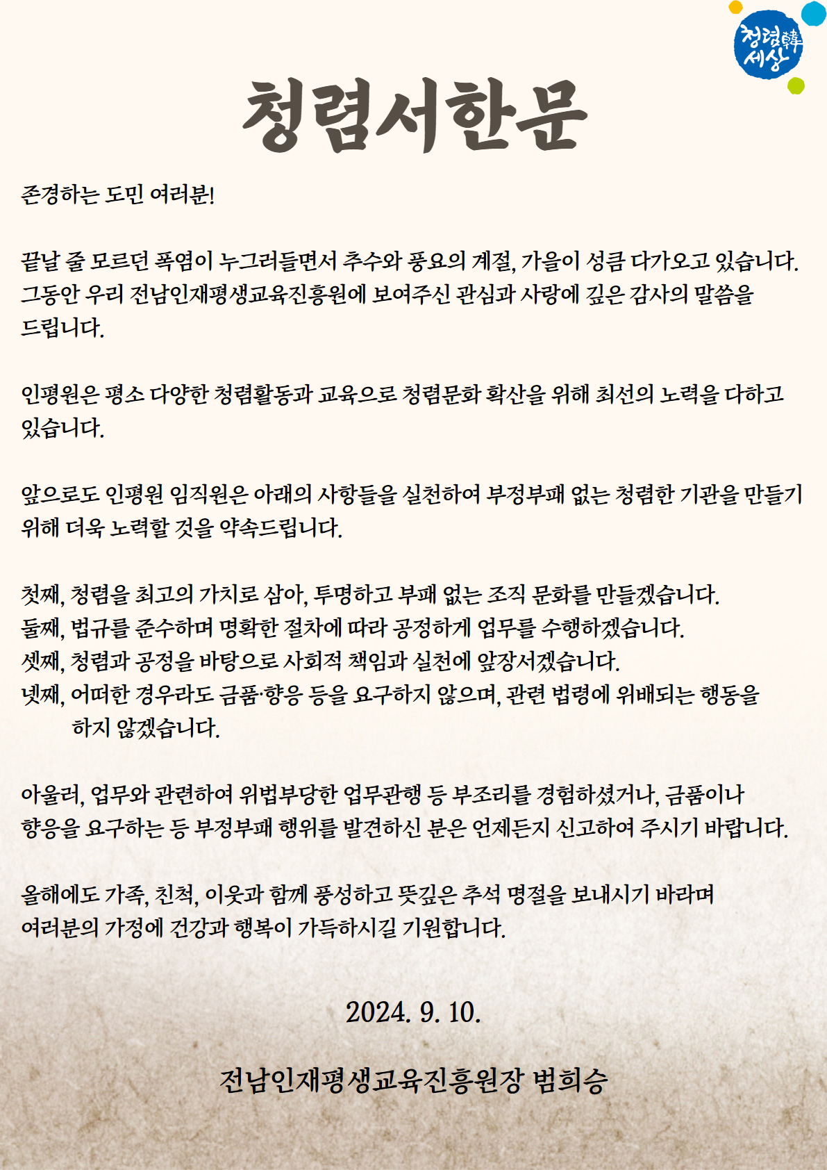 2024년 청렴서한문