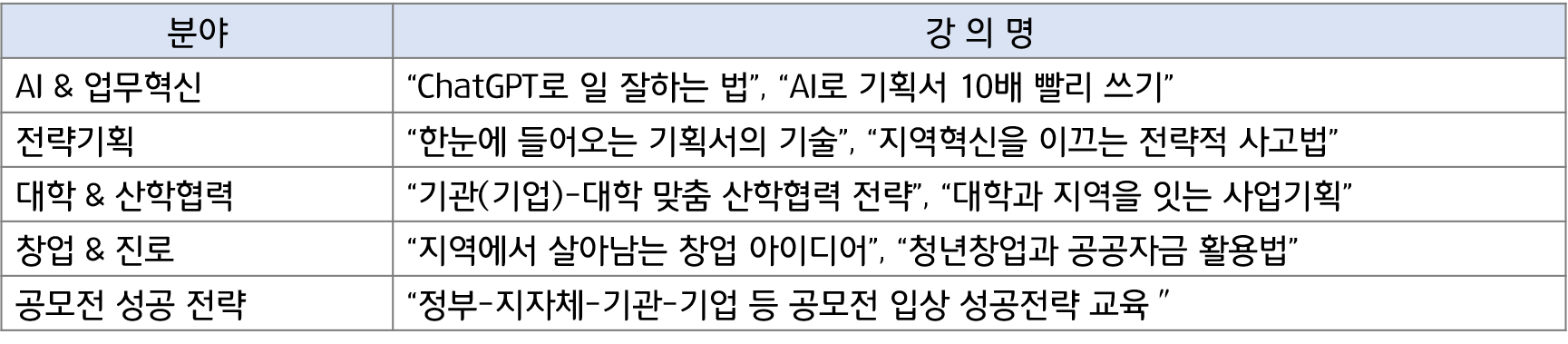 ■ 주요 강의 분야와 강의명