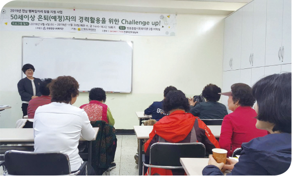 중장년 세대의 안정적인 노후 준비를 위해 새로운 역량을 개발하고 사회활동 증진을 위한 교육 지원
