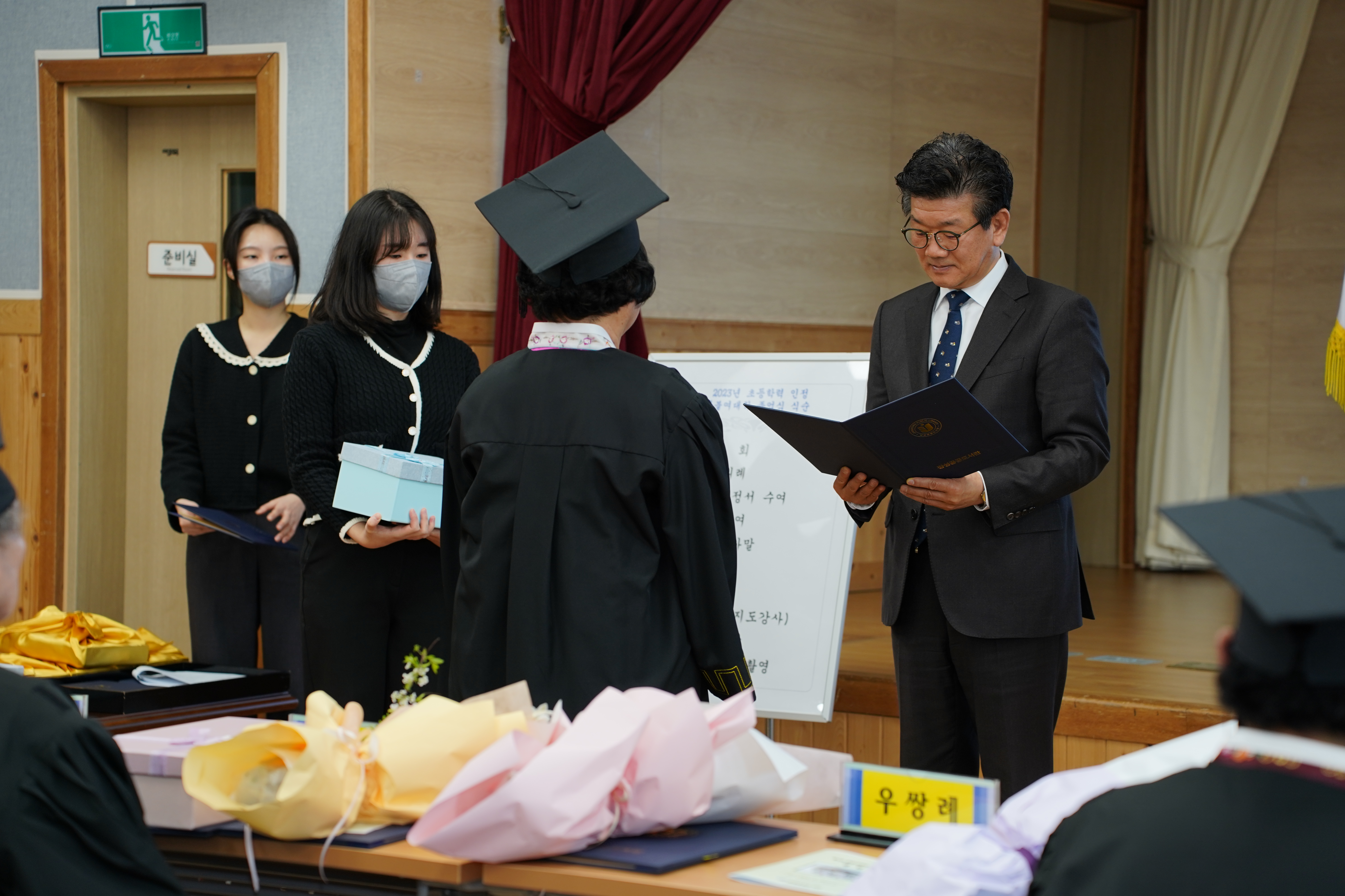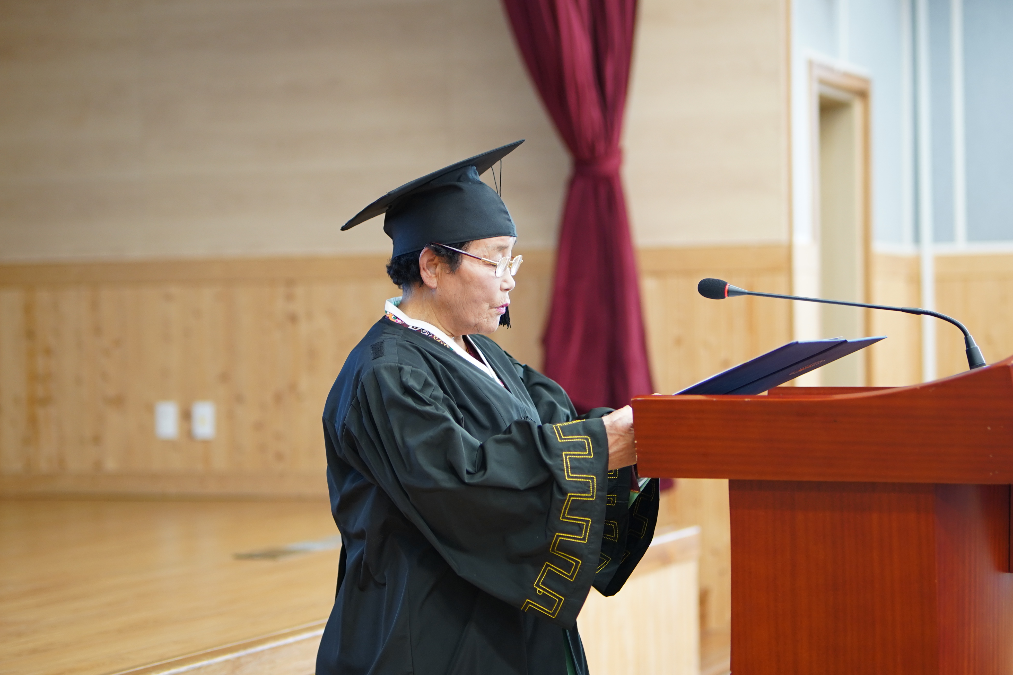 졸업반의 담임을 맡았던 김정례 선생님은 축사에서 “한글을 모르는 엄마 때문에 내 자식이 무시당할까 봐 며느리, 사위한테는 비밀로 하고 조심스레 살았다는 한 학생의 말에 마음이 너무 아팠습니다. 여기 계시는 어르신들은 평생을 누구보다 열심히 살았습니다. 늦게나마 자신을 위해 시간을 내 공부하는 모습이 참 아름답습니다. 돌아서면 배운 걸 잊어버리지만 끝까지 포기하지 않고 이 자리까지 온 우리 학생들, 졸업을 진심으로 축하합니다.”라고 말했습니다.