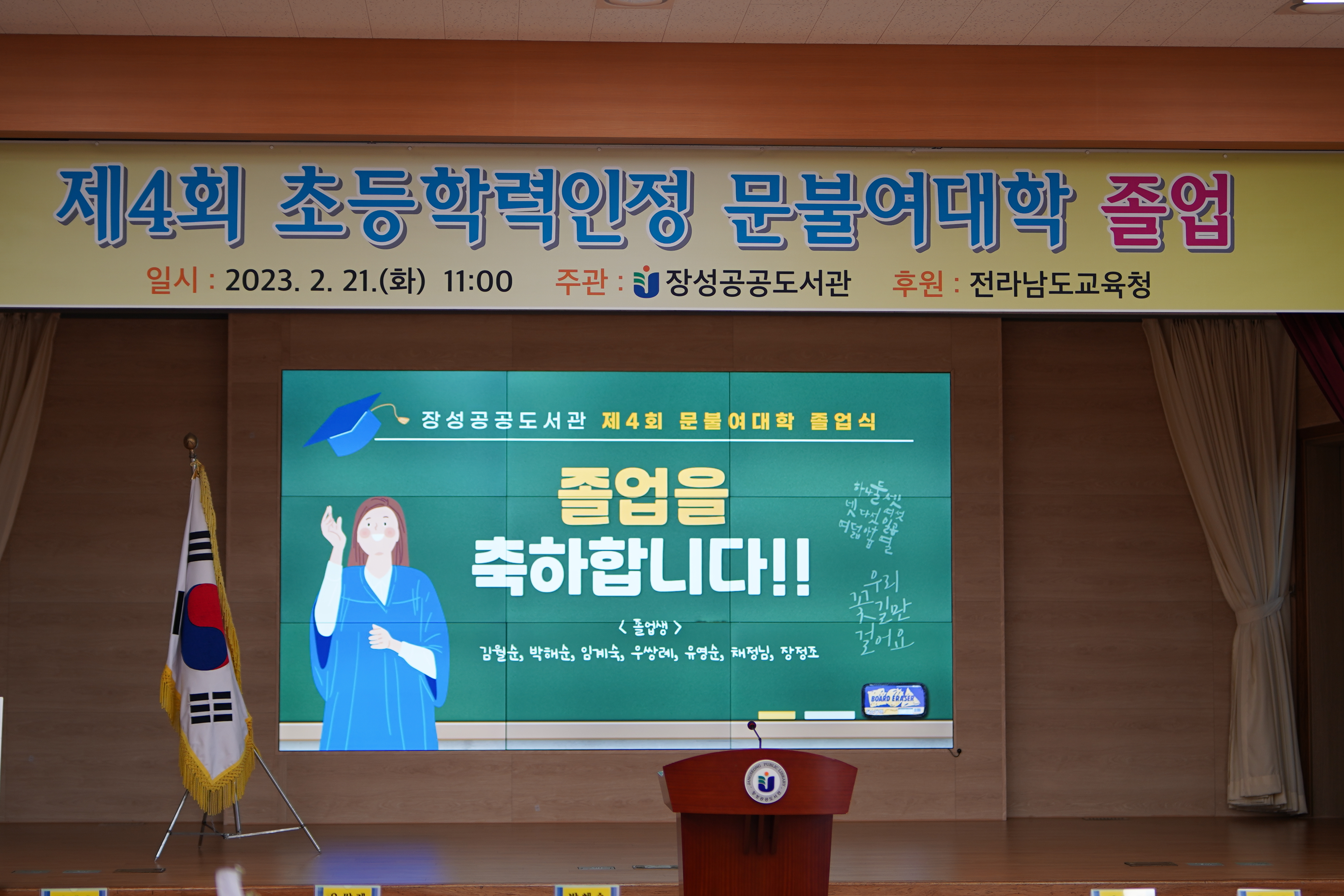 Vol.21전남교육청 최초의 도서관인 장성공공도서관(관장 김광일)은 지난 2월 21일(화) 제4회 초등학력 인정 문불여대학(文不如大學) 졸업식을 개최했습니다.