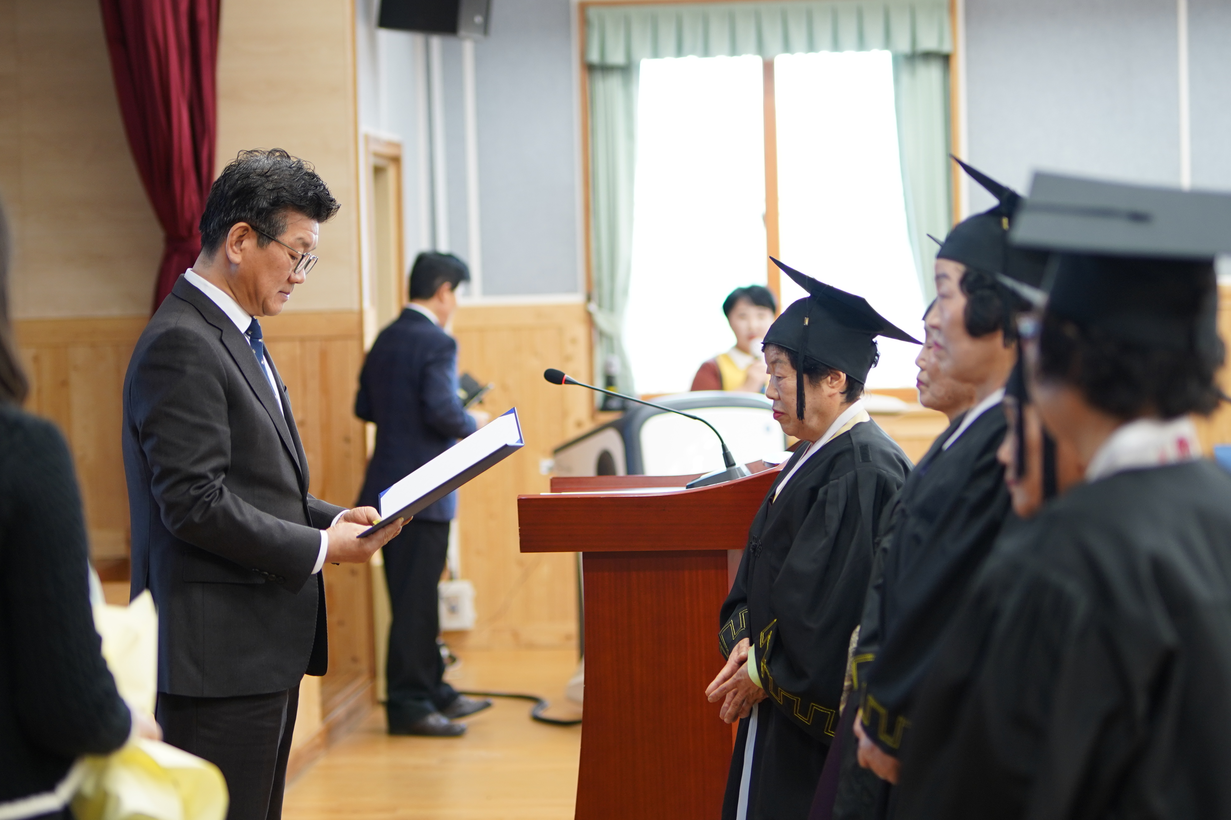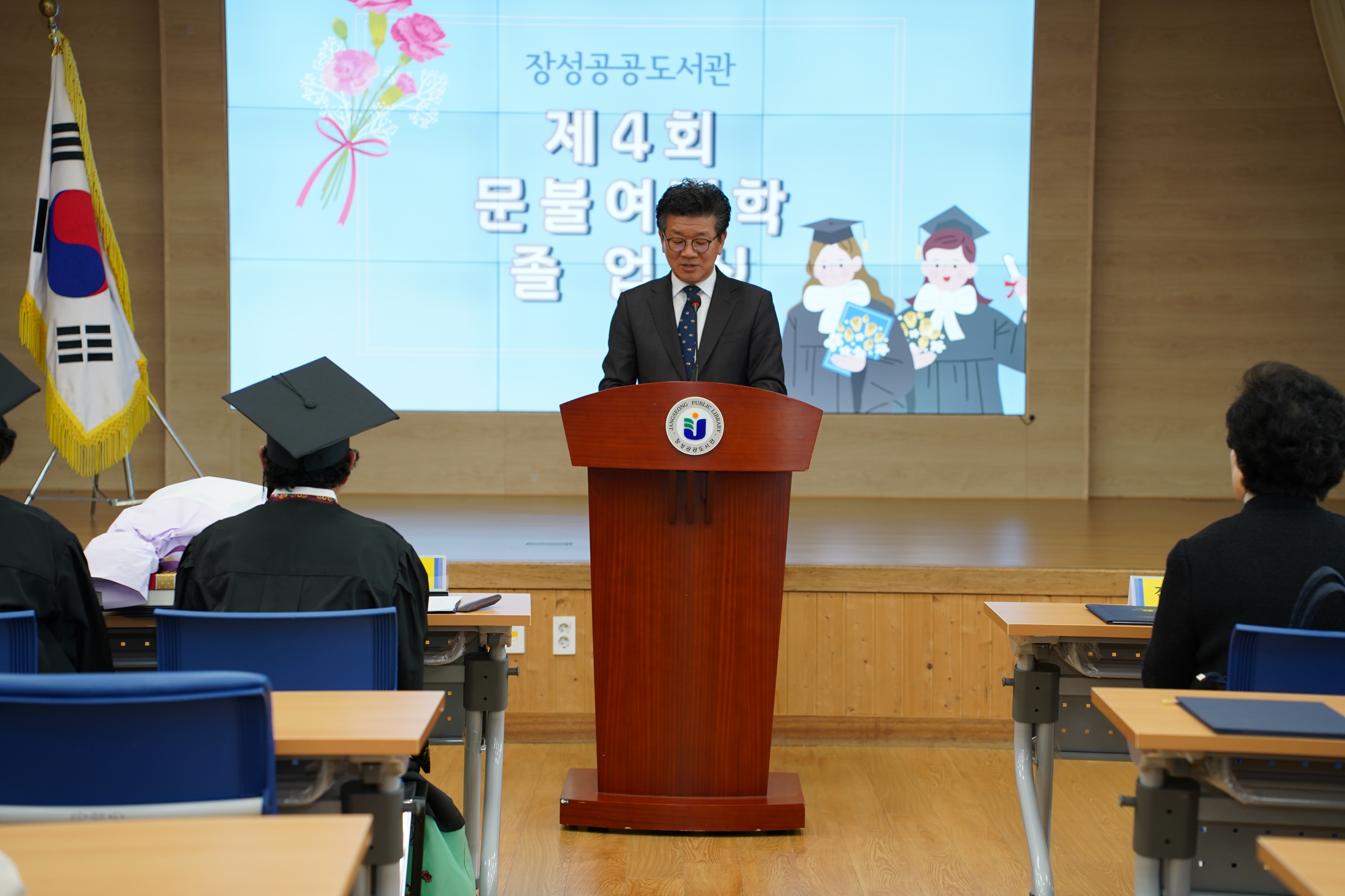 장성공공도서관 김광일 관장은 “어려운 시절을 숨 가쁘게 살아오시다가 뒤늦게 스스로를 위한 시간을 내 배움을 이어가시는 모습이 참으로 소중하고 벅차게 느껴졌습니다. 세월을 한탄하기보다 용기를 내 공부를 시작하시고, 배움의 열정으로 한 자 한 자 글을 익힌 여러분께 문불여대학은 새로운 출발점이자 전환점이 되었으리라 생각합니다. 오늘의 졸업장이 우리 어르신들에게 귀한 선물이 되기를 바라며, 앞으로도 우리 도서관은 새로운 시작을 꿈꾸는 분들께 언제나 든든한 동반자가 될 것을 약속드린다.”고 밝혔습니다.