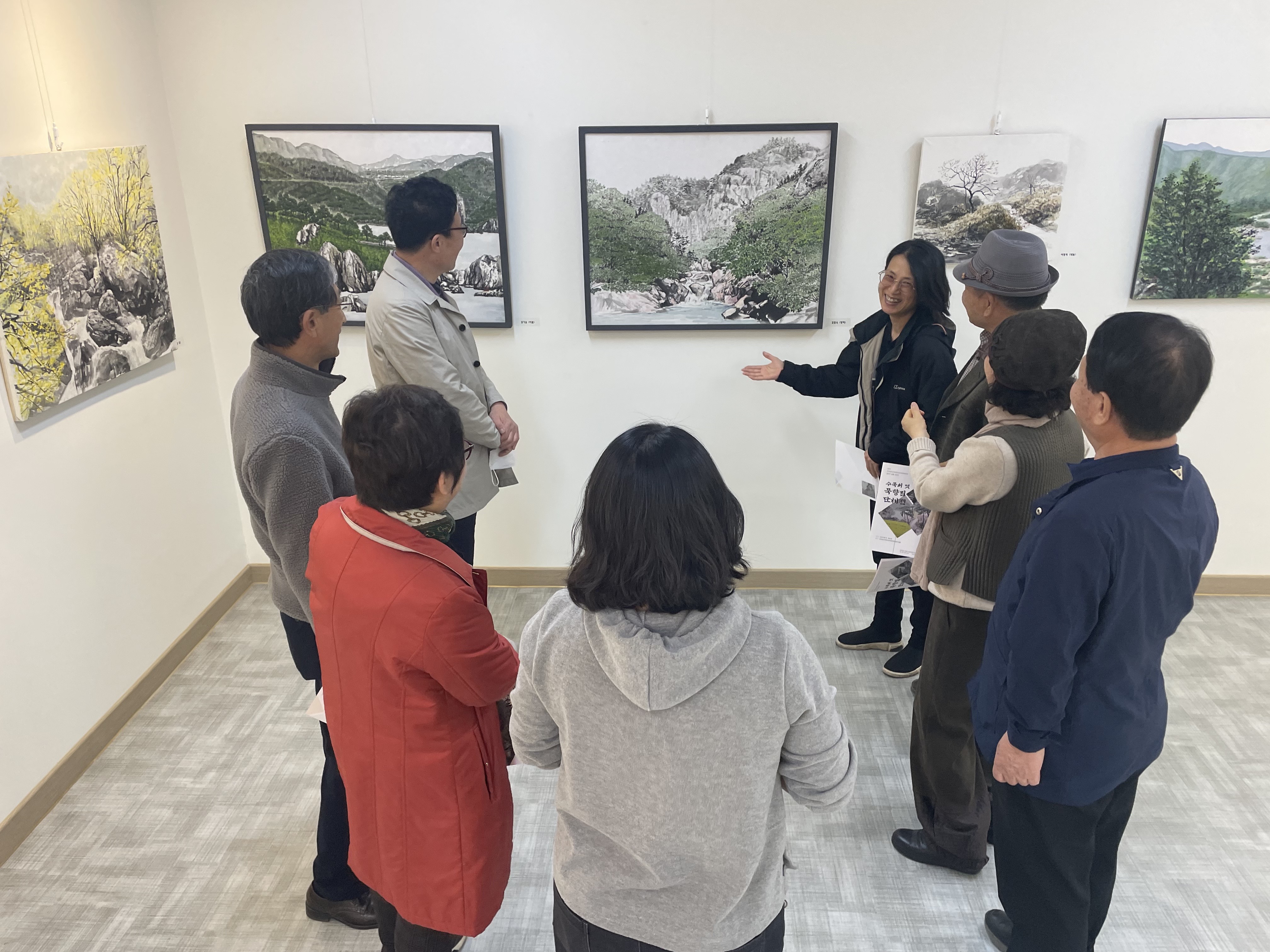 묵향림 동아리 김기술 회장은 “교육문화회관에서 수묵담채화를 배우기 시작한 지 8년이 되었다. 2015년에 동아리를 결성하여 매주 15~20여 명의 수강생이 수업에 참여하고 있으며, 봄뜰 갤러리의 첫 전시로 묵향림 회원들의 작품을 선보일 수 있어 매우 뜻깊게 생각한다”고 말했습니다. “수강생들의 직업도 자영업, 회사원, 농업, 주부 등 다양한 만큼 그림의 소재나 제목도 섬진강, 숲, 봉조리 가는 길, 호곡나루 등 주로 곡성의 강과 자연을 소재로 삼았다”면서 많은 관람을 당부했습니다.