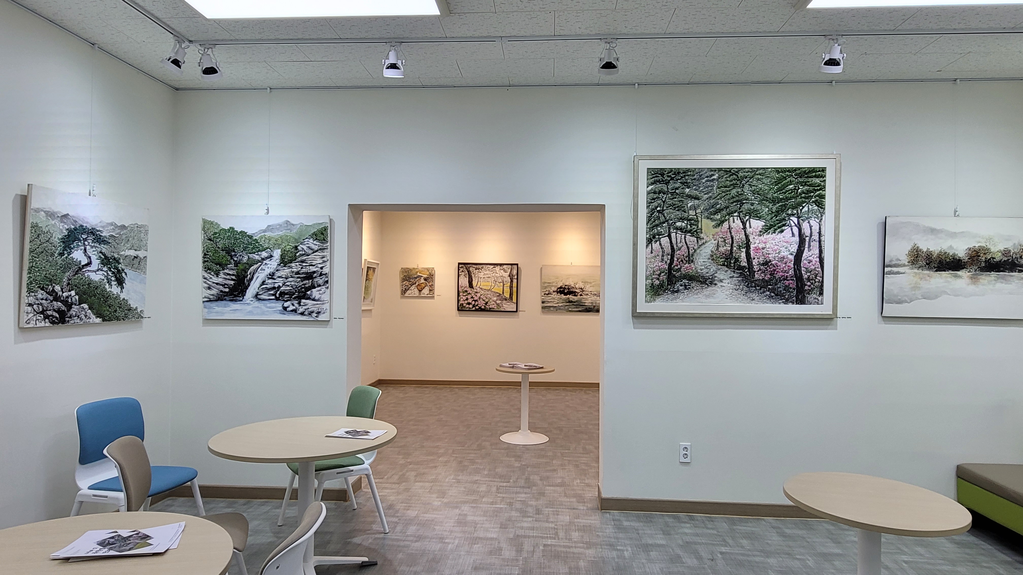 이번 전시회는 곡성교육문화회관 한국화 동아리인 ‘묵향림’ 회원들의 단체전으로, 13명 회원의 작품 ‘숲속의 향기’, ‘개울’ 등 28점을 만날 수 있습니다. 묵향림은 8년의 역사를 가진 동아리로 그동안 다수의 개인전과 단체전을 개최하였으며, 회원들이 전라남도 미술대전, 대한민국 전통미술대전 등에서 입선과 특선을 차지하는 등 곡성을 대표하는 예술 동아리로 성장했습니다.