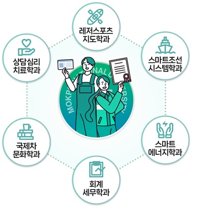 구체적으로 목포대는 지난 4월 고강도의 학사구조 개편과 함께 출범시킨 평생교육 전문 단과대학 ‘미래라이프대학’과 해당 단과대학 내 특성화 학과인 △스마트조선시스템학과, △스마트에너지학과, △레저스포츠지도학과(이상 20명 모집), △상담심리치료학과, △회계세무학과, △국제차문화학과(이상 15명 모집)를 통해 지역 성인학습자들의 다양한 수요에 부응하고 그들을 전문인력으로 재교육하겠다는 계획이다.