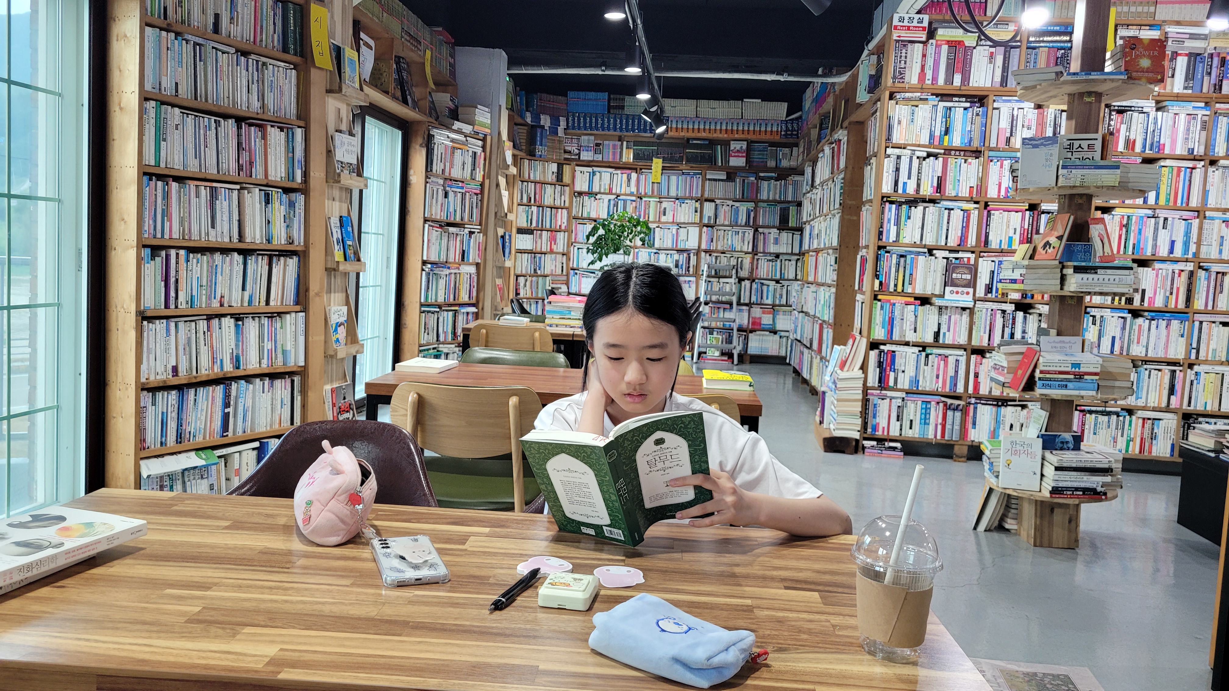 2층 테이블에 다소곳이 앉아서 물소리를 벗 삼아 책을 보고 있는 아이가 참 대견하고 예뻐 보였다.