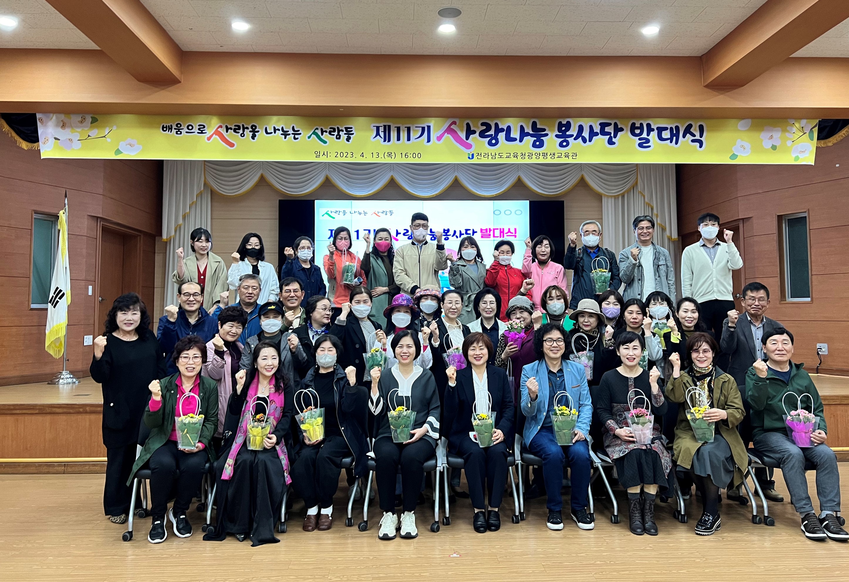 Vol.22전라남도교육청광양평생교육관(관장 정미라)은 지난 4월 13일 교육관 대강당에서 봉사단 100여명이 참석한 가운데 제11기 사랑나눔봉사단 발대식을 개최했다.