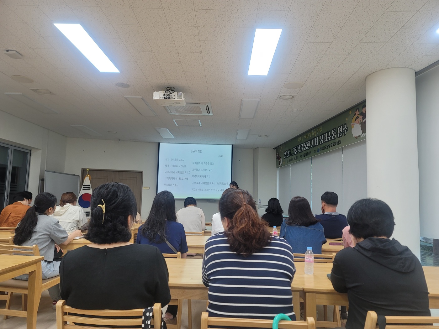 담양군 에코센터에서 6월 26일 월요일 그림책을 통한 자녀와의 심리소통을 위한 학부모역량강화 연수를 진행하였다. 이날 연수에서는 다비드칼리의 백설공주와 일흔일곱난쟁이책 등 다양한 그림책 (빵점, 새빨간 질투, 사자가 작아졌어)등 이 소개되었다. 이번 연수는 그림책을 통해 자녀와의 심리상태를 파악하고 책은 그저 읽는다는 의미 이상을 갖는다는 공감과 학부모의 맞춤형 역할에 대한 전달이 눈시울을 적시는 부모도 있었다. (사)대한독서문화예술협회 장재경 이사의 강의를 통한, 독서는 단순을 책의 글씨를 읽는 것에서 마음을, 감정을, 표정을, 그림을, 분위기를....읽는 의미를 전달 받으며, 한눈에 보는 전뱡향 독서법 부분에서는 책은 쉼과 회복의 독서의 시간으로 의미 있게 맞춤형 역할에 대해 알아보는 시간이었다. 학부모가 자녀와 한권의 책이라도 같이 읽고 서로 이야기 하는 시간을 갖는 것이 더 효과적인 교육임을 강조하며, 자녀독서지도 방법, 그림책을 이용한 자녀교육방법 안내에 고개를 끄덕이며 매우 집중하는 시간이 됐다. 책을 읽게 하고 싶은 부모의 마음은 모두 같을 거라 생각된다. 하지만 자녀가 혼자 책을 읽게 하는 것보다는 함께 책을 보면서 서로 소통하는 것이 무엇보다 중요함을 일깨워주는 시간이었다. 무엇보다 이날 참석한 학부모들의 마음을 자극하는 시간이 되었다.