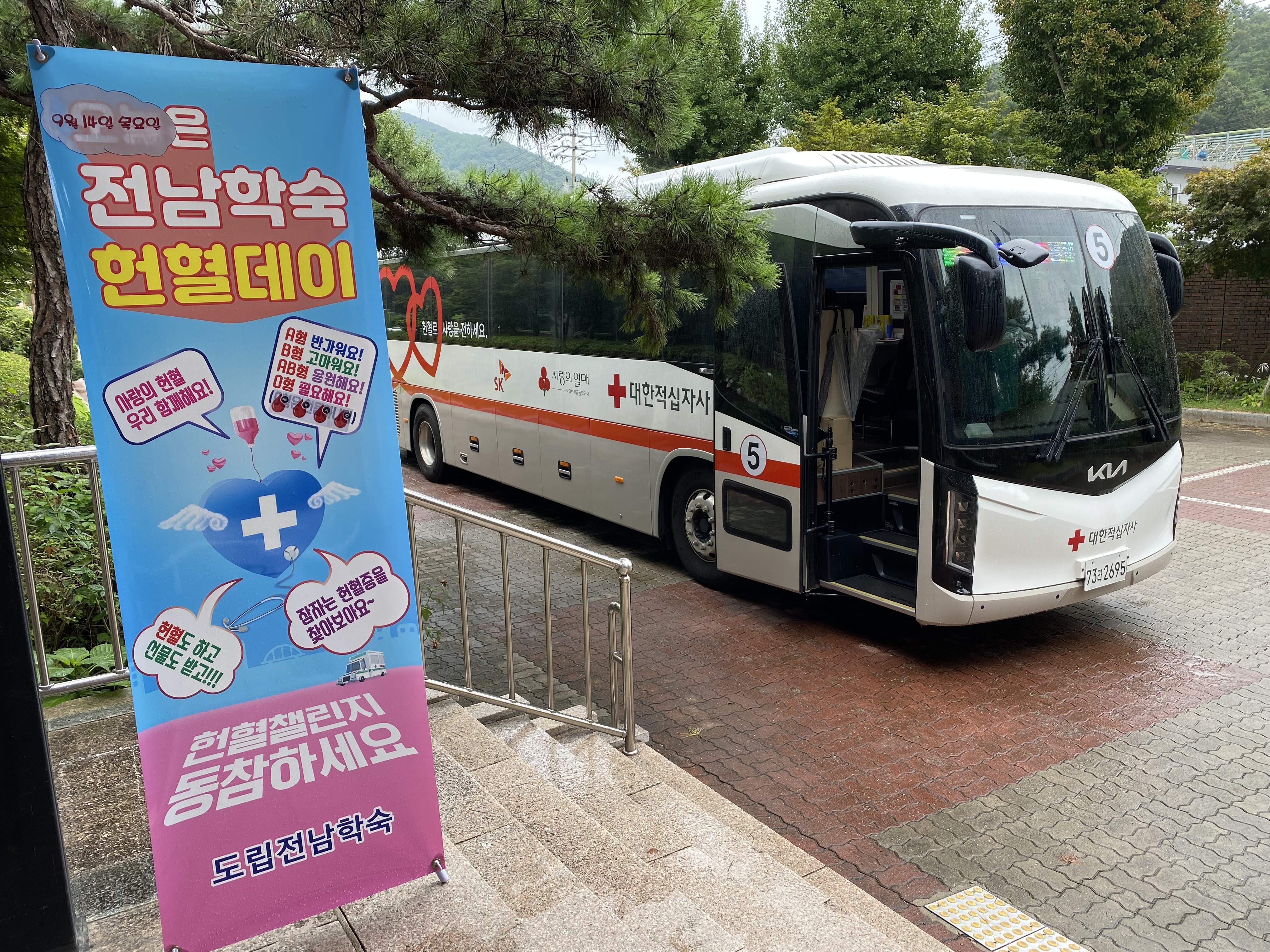 이날 오전 10시부터 오후 5시까지 전남학숙 정문 앞 헌혈버스에서 대학생 및 직원 40여명이 헌혈캠페인에 동참하고, 스스로 기증한 헌혈증서 100여장을 생명 나눔의 소중한 곳에 쓰일 수 있도록 대한적십자사 광주전남혈액원에 기증하였다.