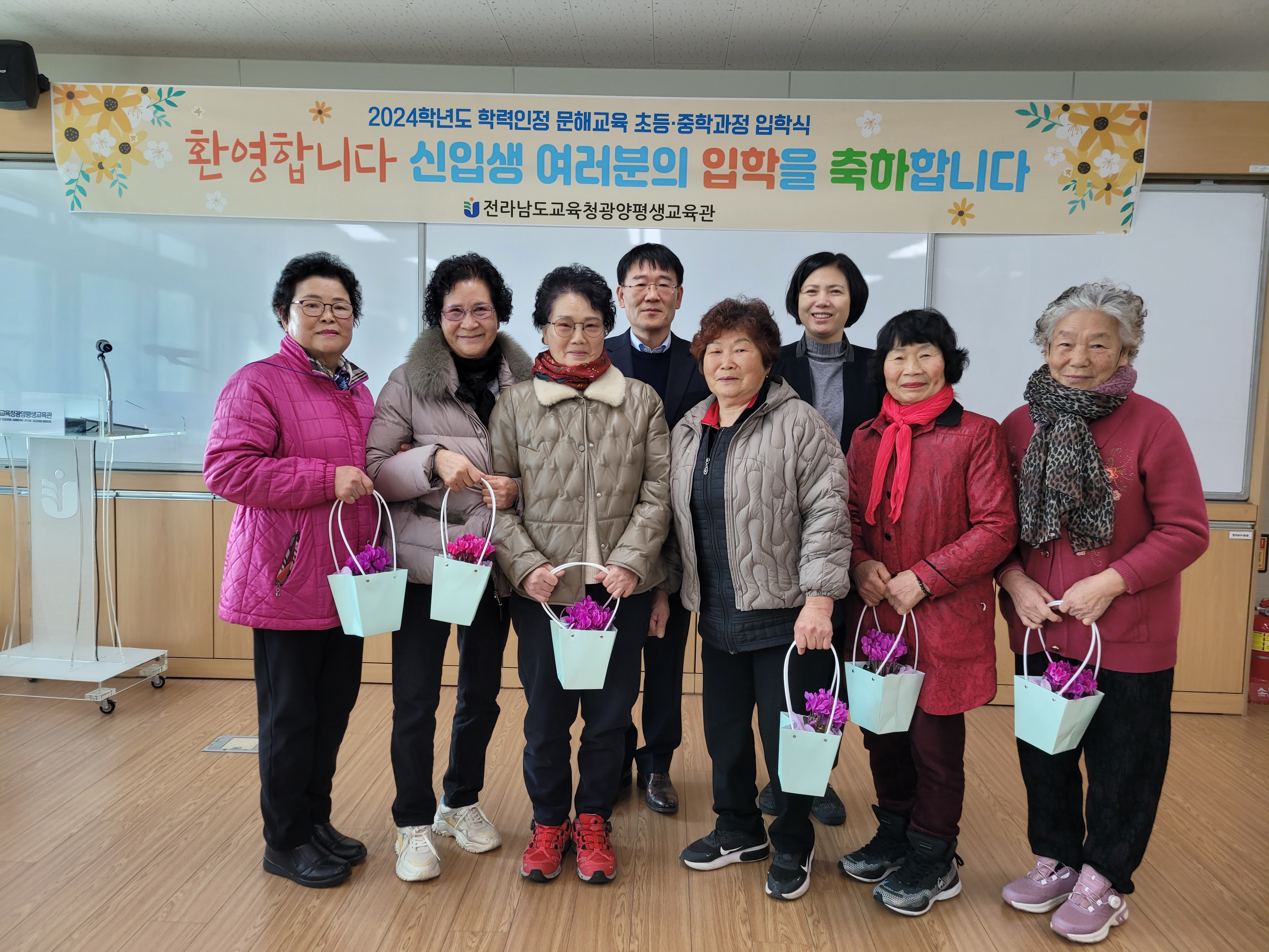 전라남도교육청 광양평생교육관(관장 양재호)은 지난 3월 4일 학력인정 문해교육 중학과정과 3월 5일 초등과정 입학식을 시작으로 2024학년도 초등, 중학 학력인정 성인문해 교육(빛드림학당)을 개강했습니다.
