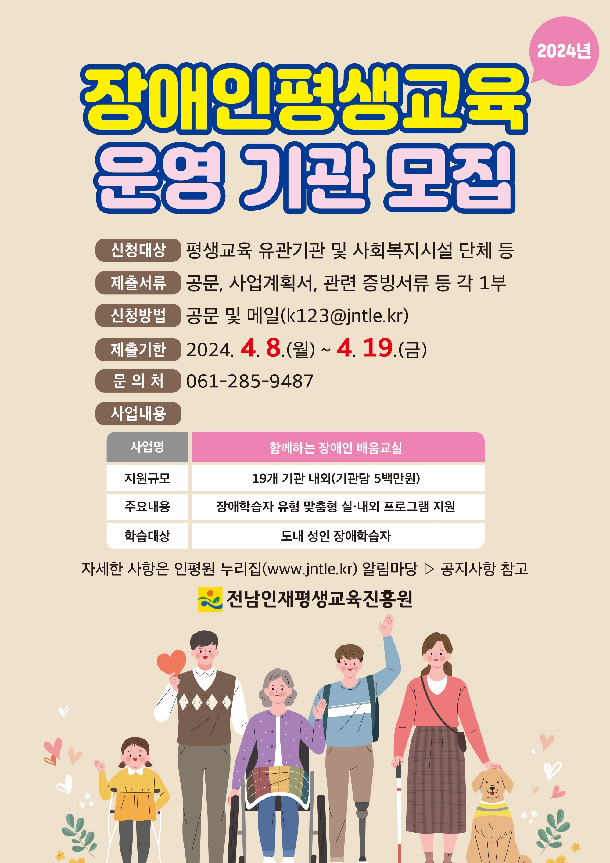 전남도, 평생교육 활성화 운영 기관·단체 모집