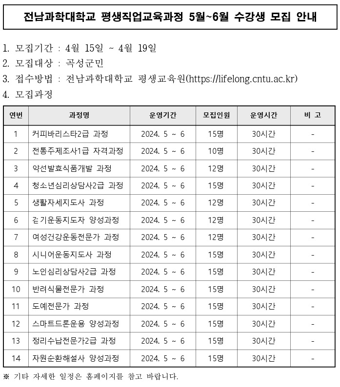 평생직업교육과정 수강생 모집