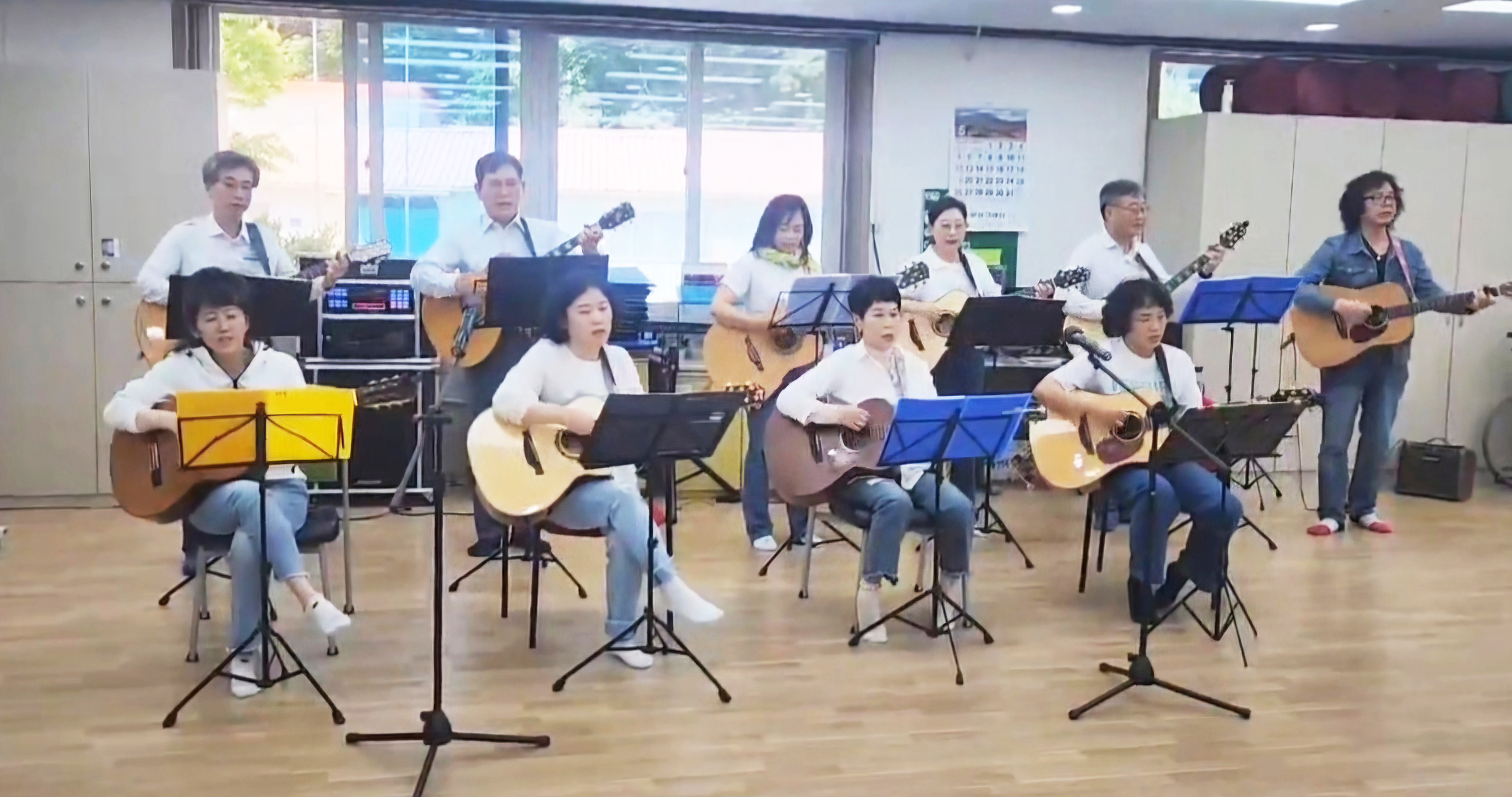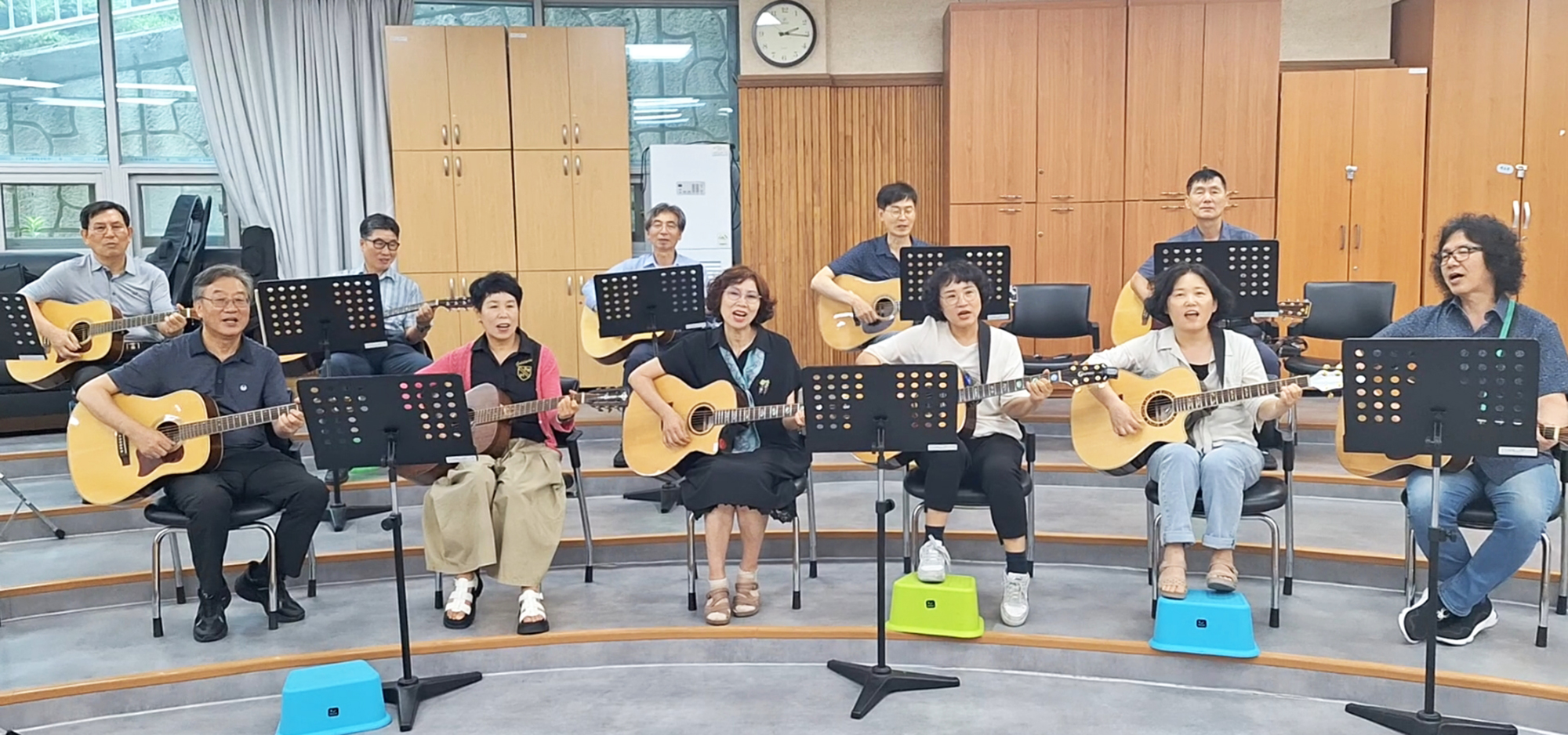 흰티셔츠에 청바지를 입고 각종 평생학습축제는 물론 경로잔치에서 신명나게 분위기를 돋우는 것도 이들의 몫인데요. 보는 사람, 연주하는 사람 모두 함께 노래 부르며 사랑의 하모니로 하나가 되는 팀이기도 합니다.