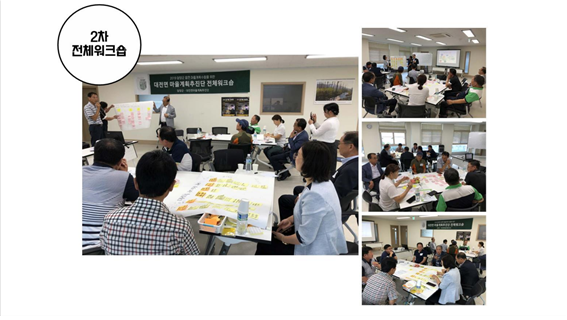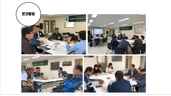 특히, 주목할 점은 활발한 토론을 통하여 지역사회에 최우선적으로 지역주민 전체가 공감할 수 있는 의제를 주민총회를 통해 3개분과에서 28명(남 17명, 여 11명)의 회원들이 지역의제로 선정된 내용을 바탕으로 5대 핵심의제를 추출하는 과정은 매우 인상적이었다. 마을계획 수립과정을 살펴보면, 주민수요조사를 위한 워크숍개최, 지역의 재발굴, 마을 계획 수립, 주민총회, 마을계획평가 주민사업 실행의 과정을 거치고 있었다. 아름다운 대전면을 위한 환경분과 의제로는 대전천 생태하천 복원, 27청정 대전면, 평장리 경관농업과 생태관광, 대전면 토탈관광 안내판을, 살맛나는 대전면 문화복지분과 의제로는 대전면 대표축제 개발, 대전면 문화지도 제작 및 콘텐츠 구축, 일자리 창출을 위한 교육사업, 다양한 문예프로그램 구축을, 살기좋은 대전면 생활인프라분과 의제로는 현대식 회전교차로 설치, 대치교 인도설치, 노후화된 마을 야외화장실 개선, 마을 골목길 정비 등 12개 의제 중에서 5개 의제를 추출하는 과정을 진행한다. 이는 자치회원들의 자발적인 참여로 효율적으로 운영되고 있었다. 그중에서도 최근 이슈화되고 있는 기후환경변화에 선제적으로 대응할 수 있는 생태하천의 복원 등은 다른 주민자치회는 물론 주민자치위원회에도 일반화시키기에도 충분하다는 생각이 들었다. 기타 회전식교차로 실시, 대표축제 개발 , 시골지역의 마을 골목길 정비, 노후화마을 화장실시설 개선 등이 선정되었다. 또 다른 추진사업으로는 문화센터, 문화창작소, 작은 도서관 등을 이용한 동아리 활동의 성과 공유회 및 발표회를 통한 주민학습자들의 재능과 끼를 공유하고 있기도 하였다. 잊혀지기 쉬운 자연유산 민속행사인 한재 천년 느티나무 당산재, 강사를 초빙한 고추장 만들기로 복지사각지대 취약계층에게 고추장 나눔행사를 통한 나눔과 배려의 공동체 활성화에 기여 등의 활동은 지역주민들의 공감을 사기에 충분하다. 기타 활동으로는 흙 공예, 나무공예, 베이킹 동아리, 스카이워크, 한재 쉼터 등을 운영하고 있다.