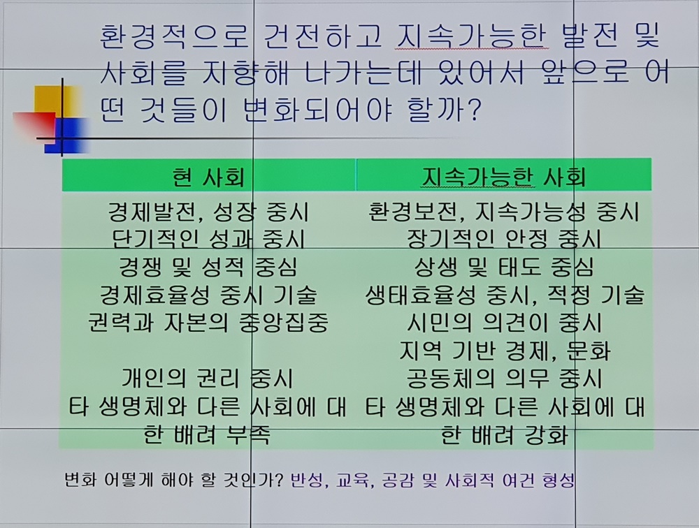 환경적으로 건전하고 지속 가능한 발전 및 사회를 지향해 나가는 데 있어서 어떤 것들이 변화되어야 할까?