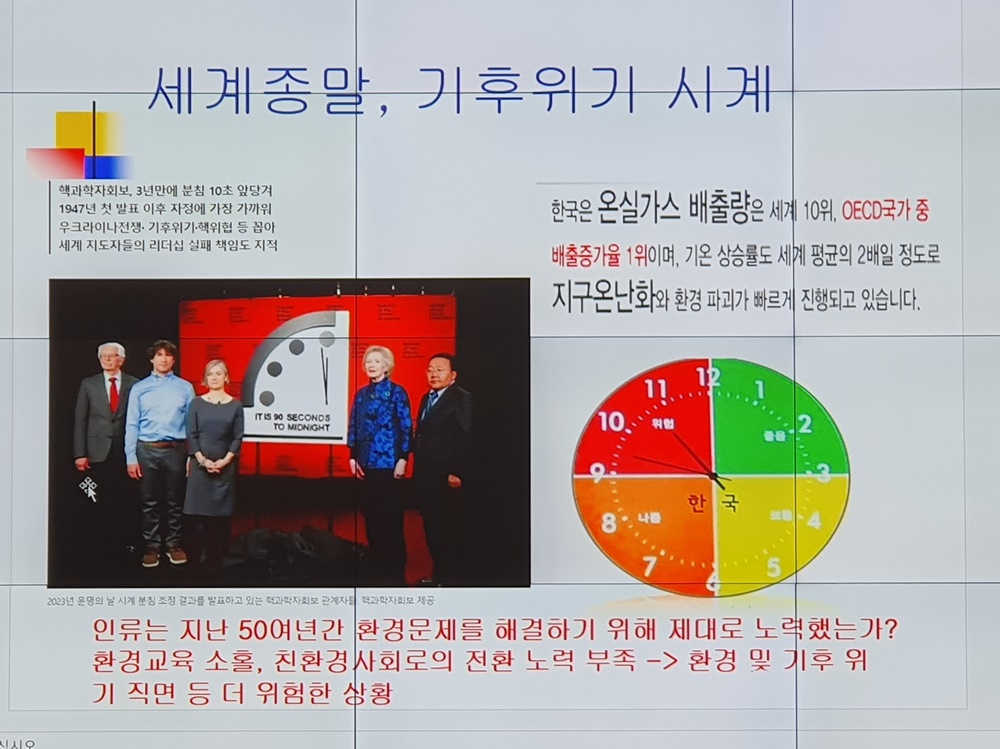 이번 강의는 ‘탄소중립과 지속 가능사회를 위한 ESG 환경교육’이라는 주제로 김대희 교수(순천대학교 사범대학교 학장)가 해주었다.