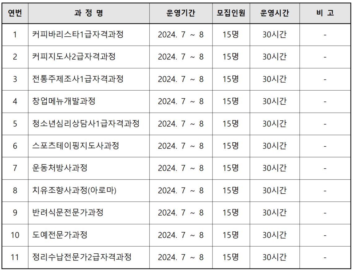 전남과학대학교 평생직업교육과정 7월~8월 수강생 모집 안내
