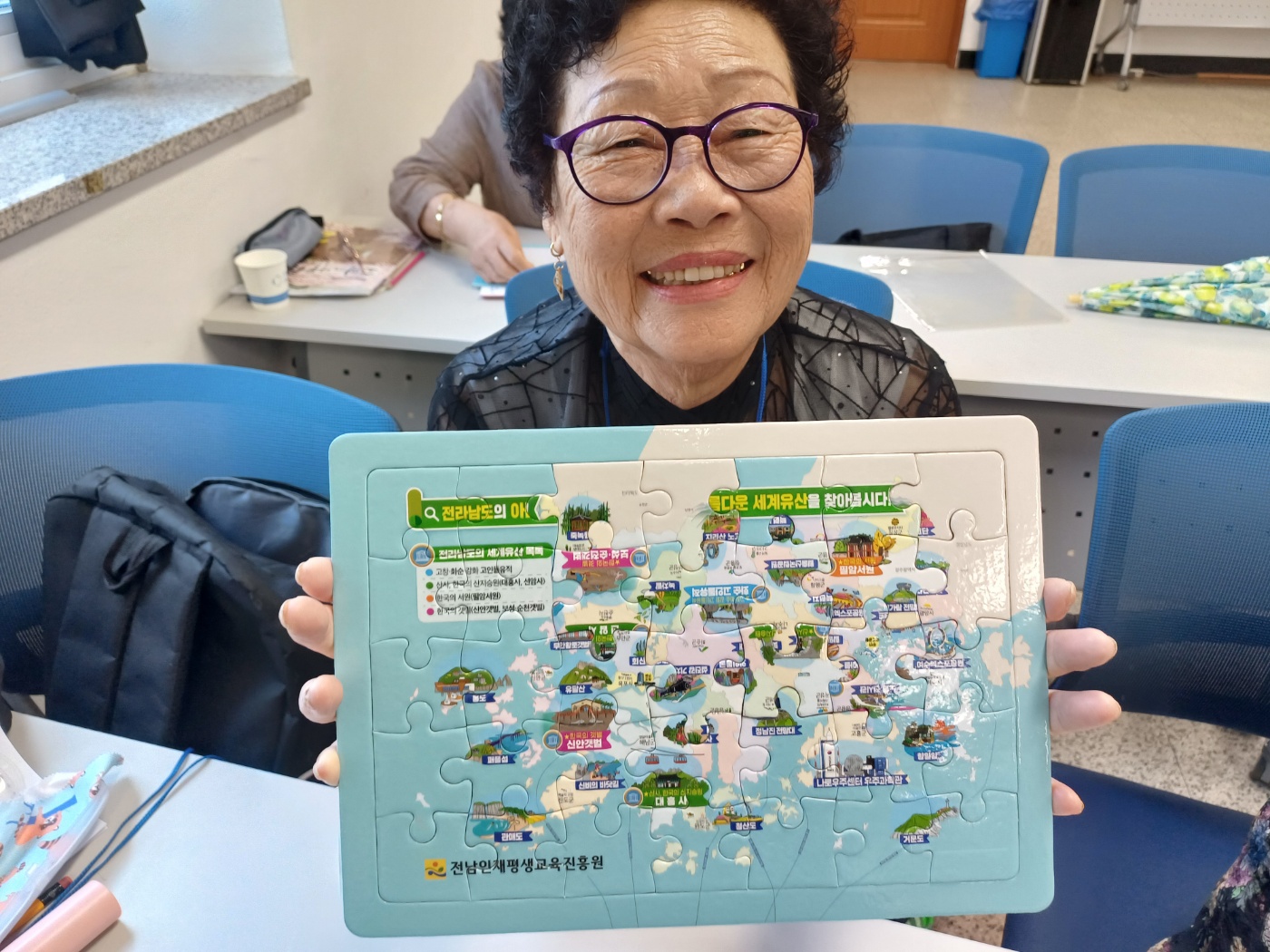 다지기 시간에는 “전라남도의 아름다운 세계유산을 찾아봅시다!” 퍼즐 맞추기였다. 생각보다 쉽지 않다고 하며 이리저리 열심히 맞추는 모습을 보니 동심의 세계로 푹 빠진 것 같았다.