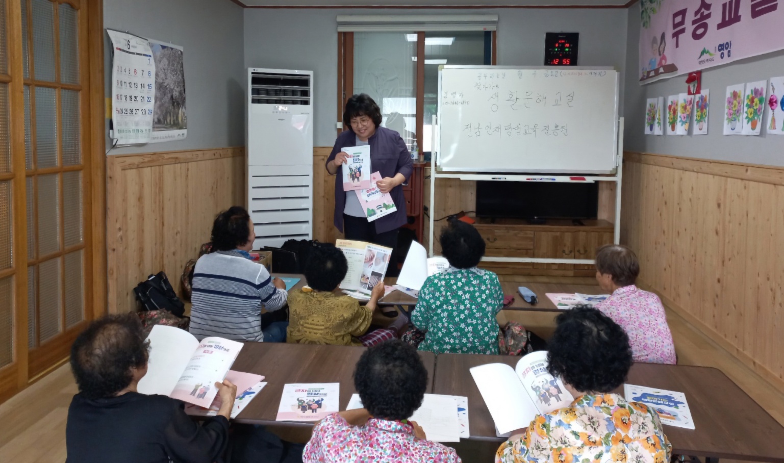 유래 없는 무더위도 마을회관 에어컨의 시원한 바람 앞에서는 꼼짝 못했다. 영암군 평생 배움학교의 학습자를 위한 학습꾸러미 선물을 가지고 각 마을회관으로 방문하니 대환영을 해 주었다. 가방, 교재, 필통, 연필, 공책, 연필깎이, 지우개, 자, 색연필, 컬러링북 등으로 알찬 구성이었다.