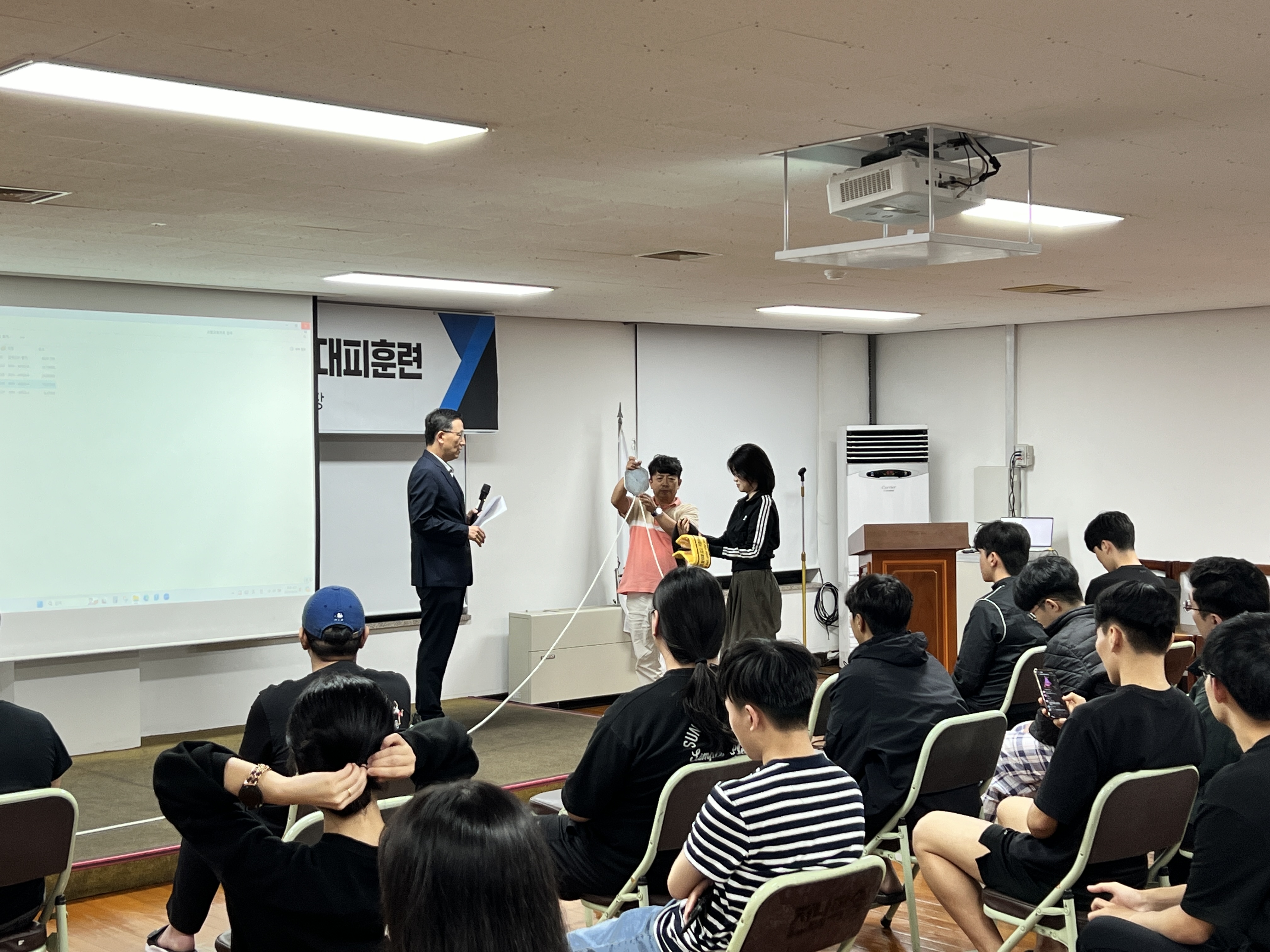 소방안전교육에서는 화재 발생 시 기본적인 대처 요령, 소화기 사용법, 화재 예방 수칙 등에 대해 교육이 이루어졌으며, 참여자들은 안전 장비 사용법과 비상 시 행동 요령을 습득했다. 또한, 화재 발생 시 피난 경로 설정, 대피 시 주의 사항 등을 중점적으로 다뤘다.