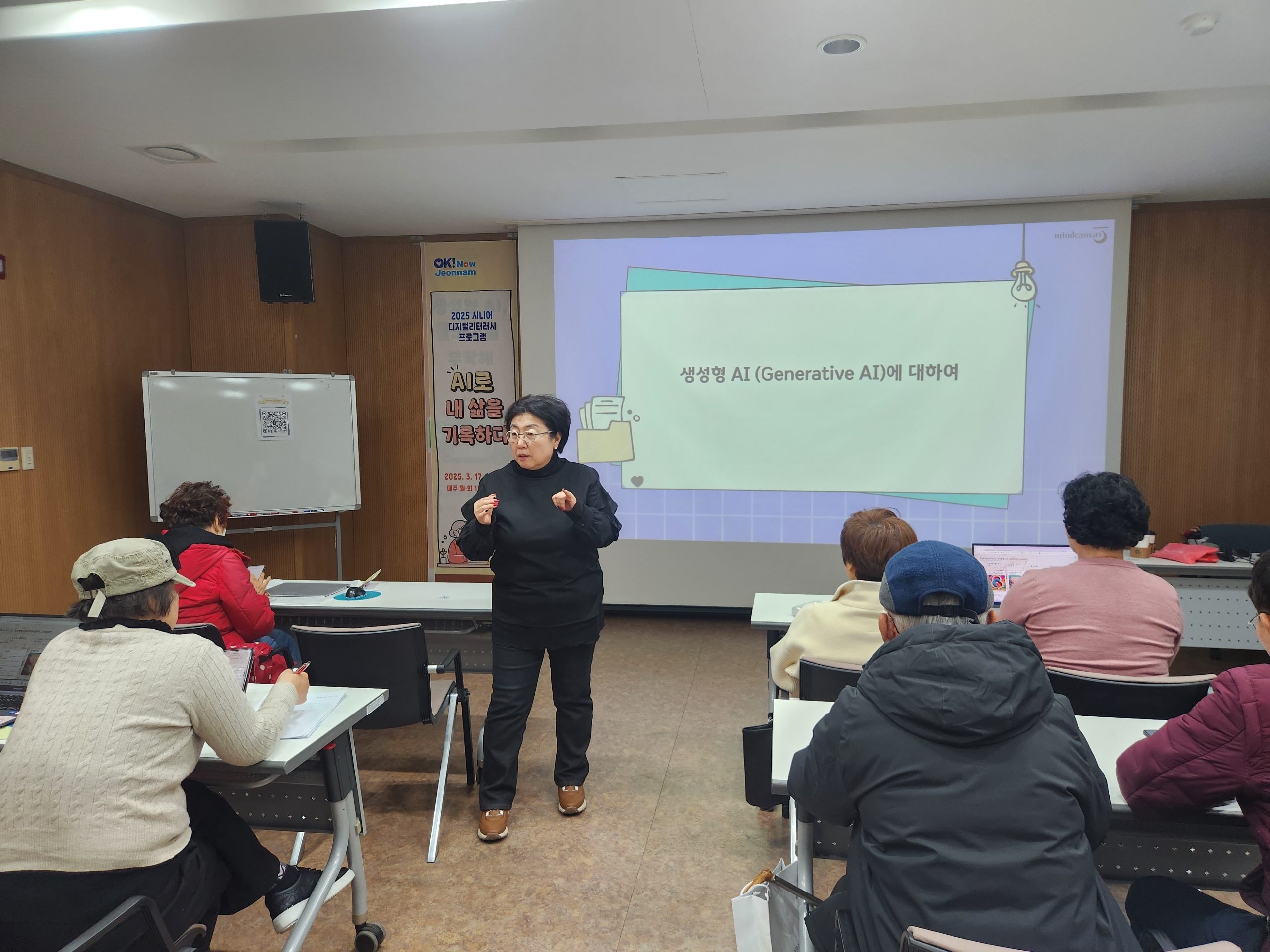 이번 교육을 맡은 허OO 강사는 디지털 문해력 교육과 시니어 감성교육을 병행해온 베테랑 강사로, “어르신들이 처음에는 ‘내가 과연 할 수 있을까’ 하는 걱정을 많이 하시지만, 막상 수업이 시작되면 AI와 소통하며 웃고 감탄하는 모습에서 큰 감동을 받는다”며, “이 프로그램은 단순한 기술 습득이 아니라 삶의 의미를 다시 돌아보고, 나를 사랑하는 법을 배우는 따뜻한 과정”이라고 전했다.