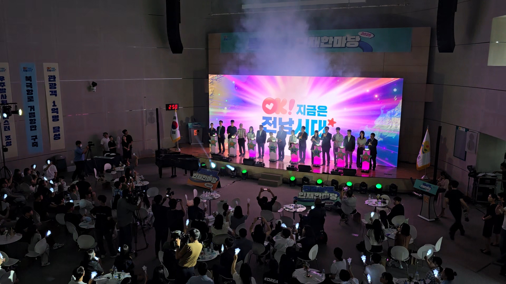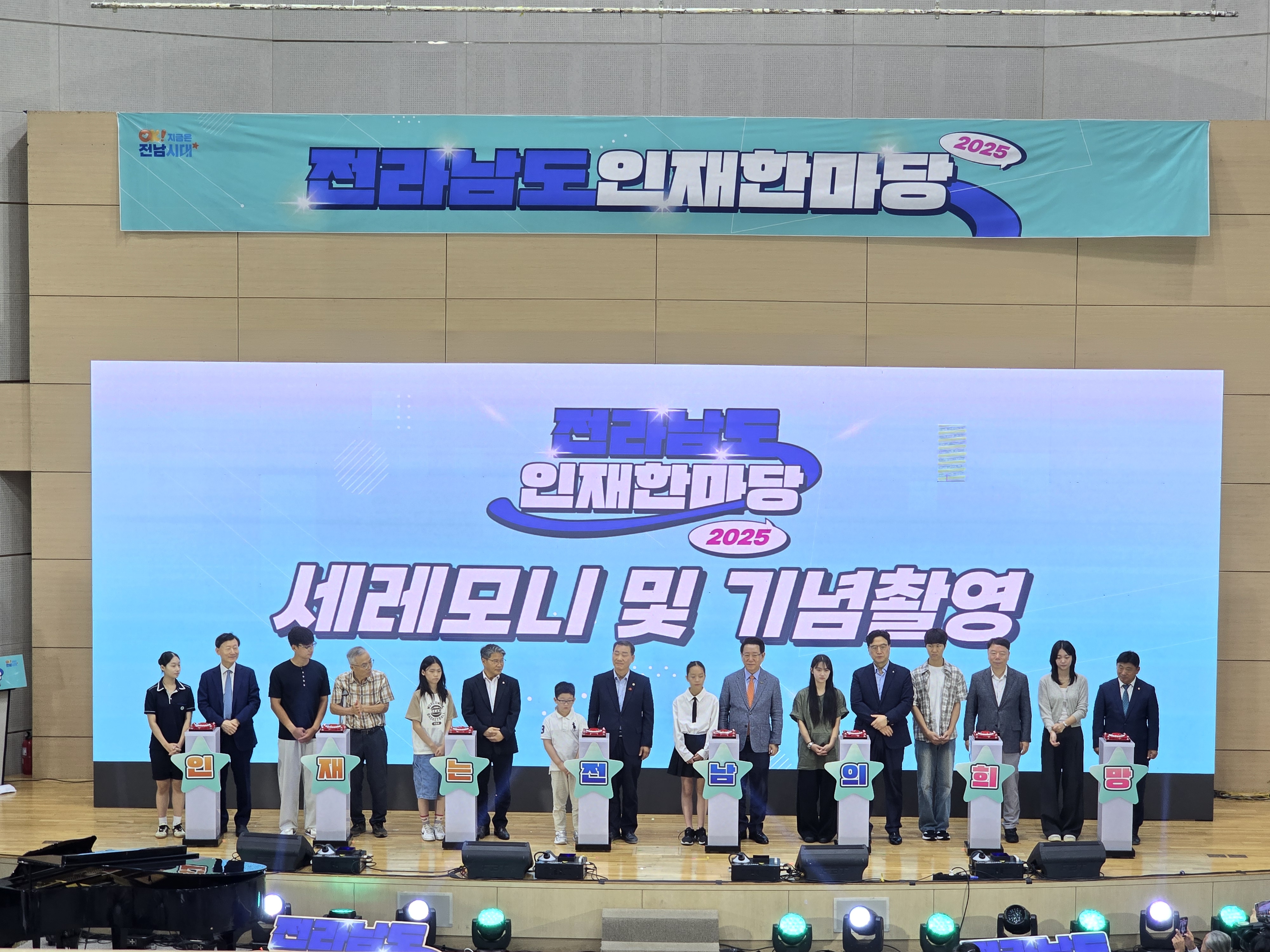 행사의 하이라이트인 세레모니와 기념촬영에서는 인재 대표들과 내빈이 무대 앞에 나서고, 나머지 참석자들은 불빛이 나오는 응원봉을 들고 함께 카운트다운을 외쳤다. 모두가 하나 되어 “인재는 전남의 희망”을 외치는 순간, 왕인실은 미래를 향한 열정과 희망으로 가득 찼다. 이 장면은 참석자들에게 깊은 울림을 주었고, 전남 인재육성 사업의 비전을 상징적으로 보여주는 순간이기도 했다.