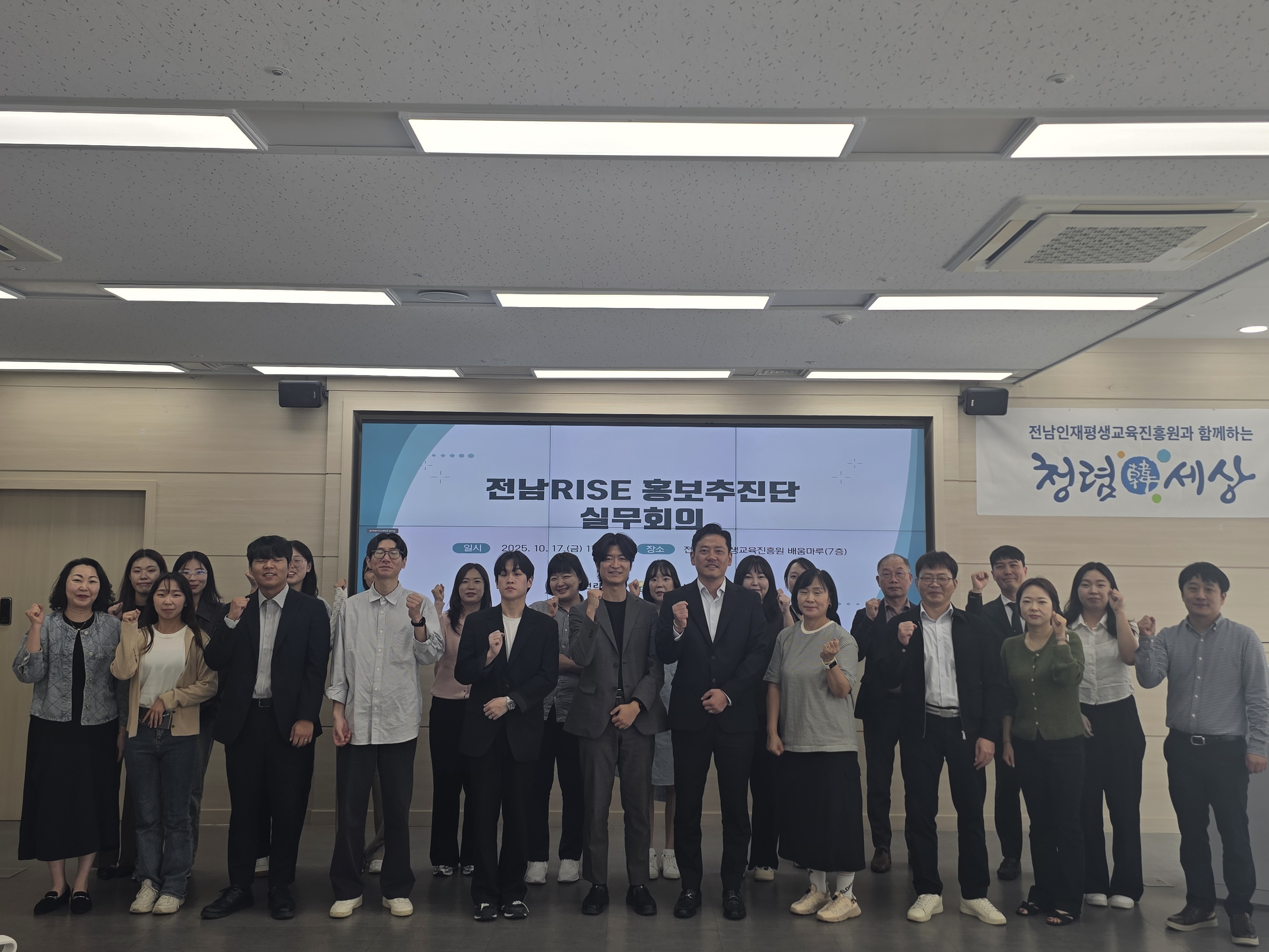 전남RISE센터는 지난 17일 전남인재평생교육진흥원에서 전남RISE센터 관계자와 도내 18개 대학 홍보추진단 실무자 등 20여명이 참석하여 ‘전남RISE 홍보추진단 실무회의’를