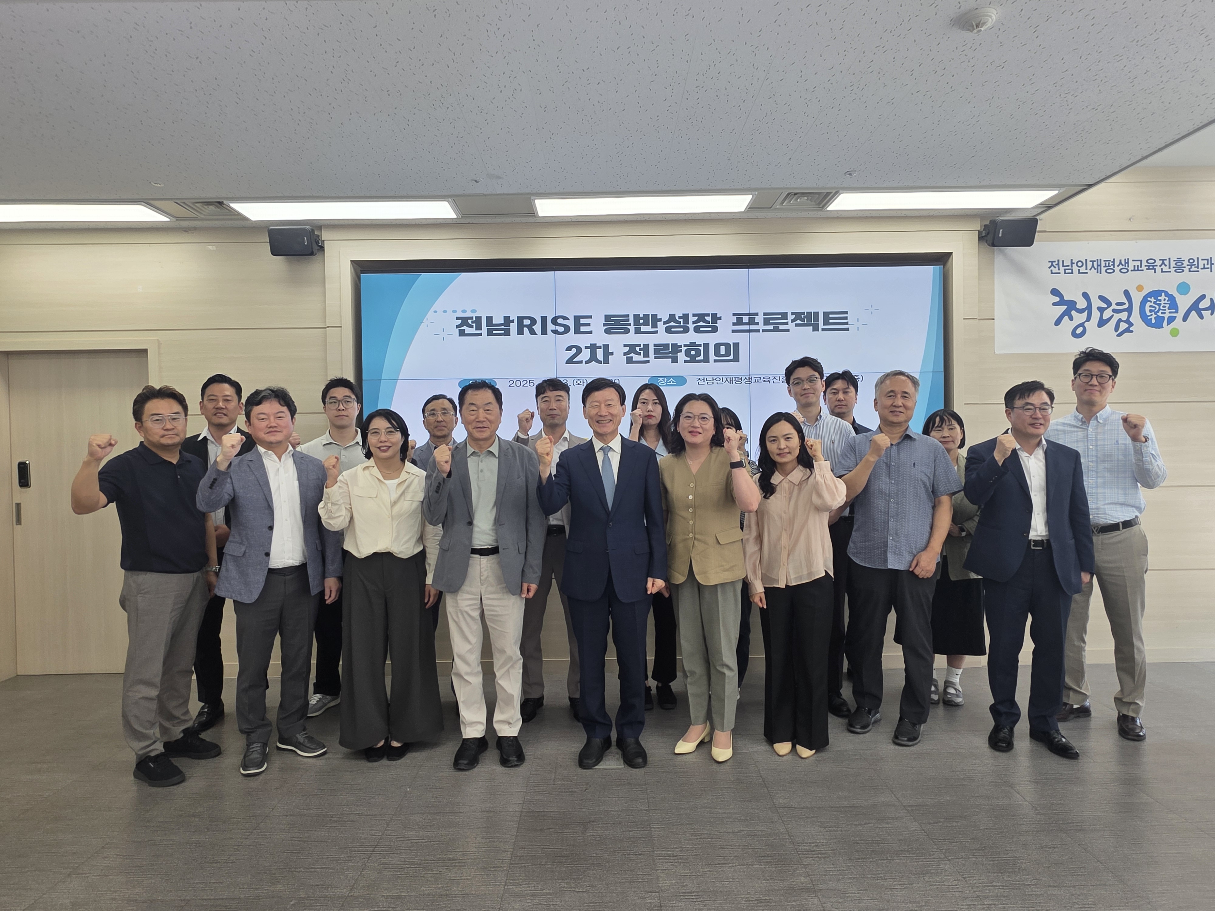 전남RISE센터는 9월 23일 전남인재평생교육진흥원에서 과제별 5개 대학 담당자 및 전남도 관계자 등이 참석한 가운데 ‘전남RISE 동반성장 프로젝트 2차 전략회의’를 개최했다.