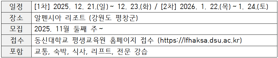 # ’25~’26 지역민과 함께하는 동신대학교 스키&보드 캠프