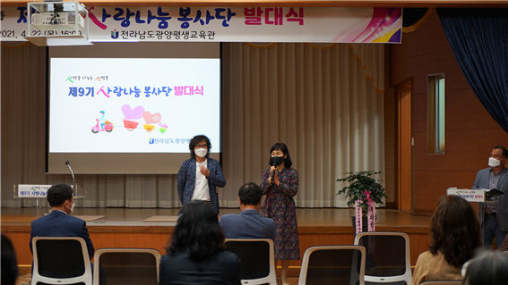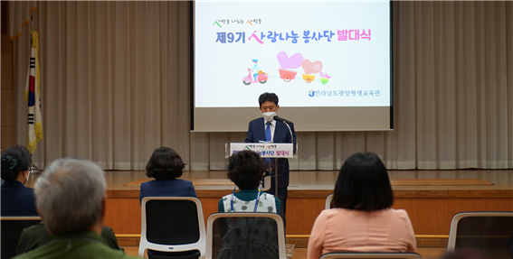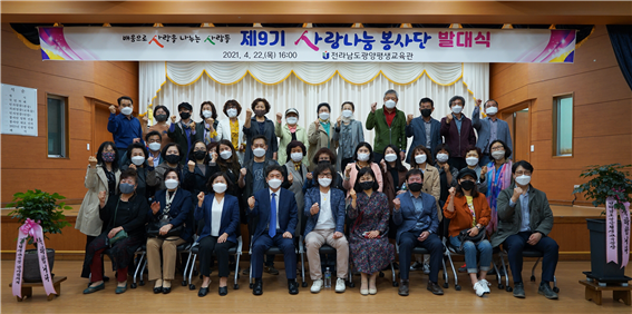 Vol.14전라남도광양평생교육관(관장 선승헌)은 지난 4월 22일 사랑나눔봉사단 40여명이 참석한 가운데 거리두기 등 방역수칙을 철저히 지키며 ‘제9기 사랑나눔봉사단’ 발대식을 가졌다.